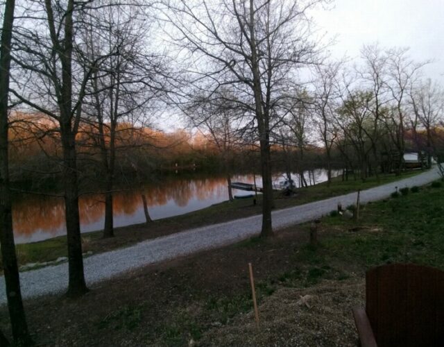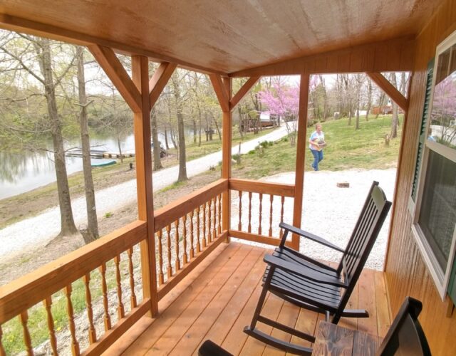This is cabin 4 spacious 14×28 it has a 6ft porch facing the lake, 2 full beds, full size fridge, bar and counter with microwave and coffee pot, t.v., a/c and heat. It sets right on our small lake has a park style grill and fire pit with picnic table.